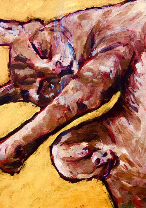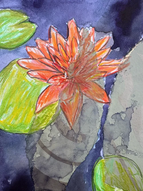 During the pregnancy, I worked on the second layer of the works, layering colored pencils and pastels on top of the first layer. I added the third and final layer, consisting of gold leaf, a few months after I gave birth.